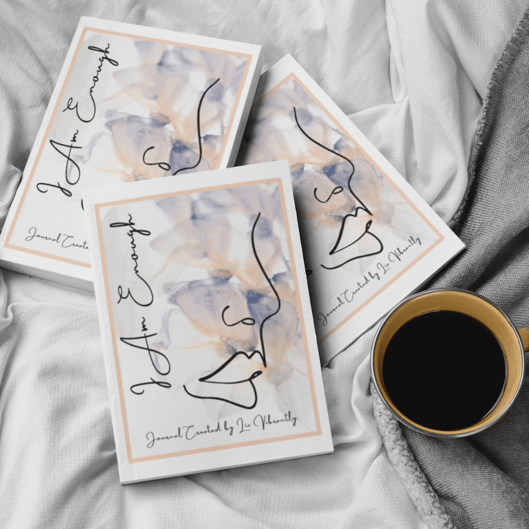 At its heart, the I AM ENOUGH Bundle is a beautiful journal filled with affirmations and letter-style prompts to help you reconnect through daily self-love.